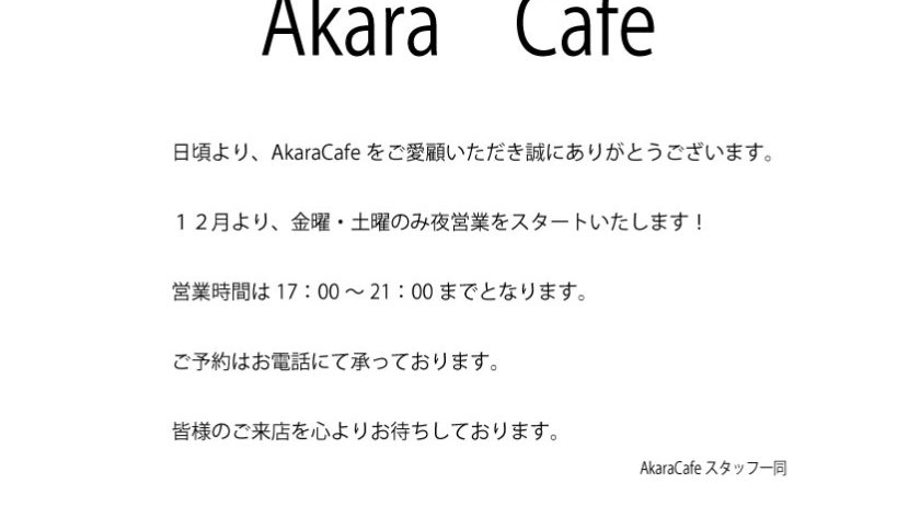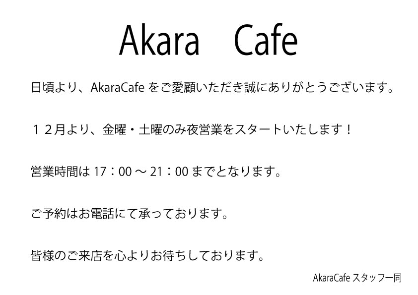 akara コメントをどうぞ (AkaraCafe夜営業始めます!)